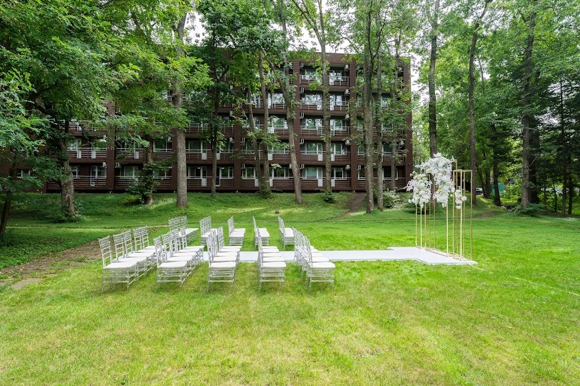 Дом торжеств находится в Лесопарковой зоне парка Aurora Hall и состоит из двух этажей.